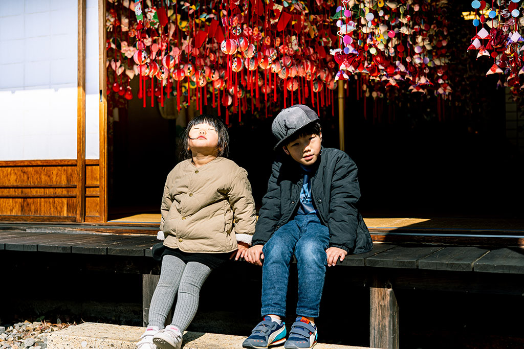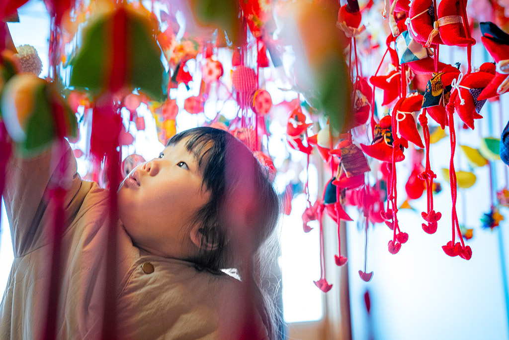 レンズは50mmの単焦点レンズです。つるし雛は部屋一面に吊るされていてどこを切り取ったらいいものか構図にとても悩みました。
