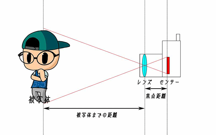 そうすると、カメラのレンズからイメージセンサーまでの距離を焦点距離として考えることができます。